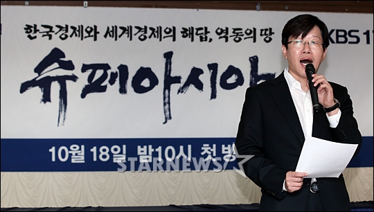 연예방송[★포토]박복용PD, '아시아의 힘을 찾아서'발행 : 2016.10.14 ・ 11:45김창현 기자박복용 PD가 14일 오전 서울 영등포구 여의도동의 한 음식점에서 진행된 KBS-SMG YUNJI 공동기획 다큐멘터리 '슈퍼아시아' 기자간담회에 참석해 인사말을 하고 있다.6부작으로 방송되는 '슈퍼아시아'는 다시 성장하고 있는 아시아 지역 국가들의 힘은 어디에서 나오고 미래는 어떻게 그려질 것인가에 대해 조명한다.<저작권자 © 스타뉴스, 무단전재 및 재배포 금지>슈퍼아시아추천 기사김창현 기자기자홈좋아요 연예-방송의 인기 급상승 뉴스연예-방송의 최신 뉴스
