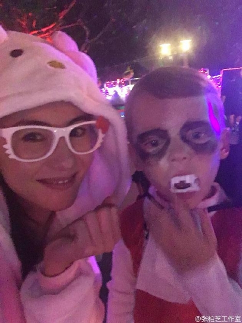 장백지가 할로윈데이를 맞아 할리퀸으로 변신해 화제다.