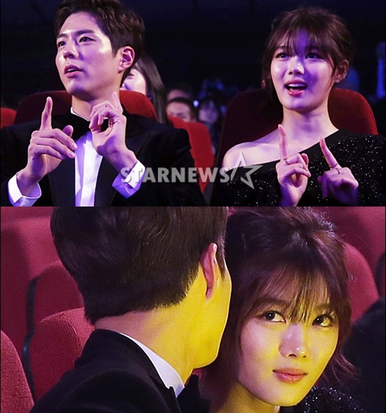 ○…KBS 2TV '구르미 그린 달빛'은 끝났지만 박보검과 김유정, '영온 커플'의 훈훈함은 계속됐다. 박보검과 김유정은 이날 AAA에 참석, 나란히 함께 앉아 팬들의 박수를 받았다. 박보검과 김유정은 함께 아이돌 그룹의 노래를 따라부르는가 하면, 4시간 동안 자리를 지키며 시상식을 즐겨 눈길을 모았다.