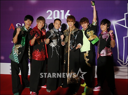 일본그룹 보이즈 앤 멘이 16일 오후 서울 동대문구 회기동 경희대학교 평화의전당에서 진행된 '2016 Asia Artist Awards(AAA)' 에서 라이즈스타상을 수상하고 포즈를 취하고 있다.