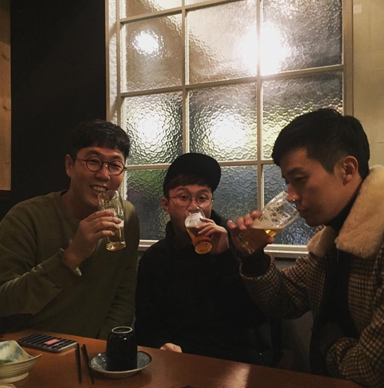 사진 속 김영철은 맥주잔을 들고 여유로운 표정을 짓고 있다. 김영철과 달리 허경환과 박성광은 다소 경직된 모습을 보여 웃음을 자아냈다.