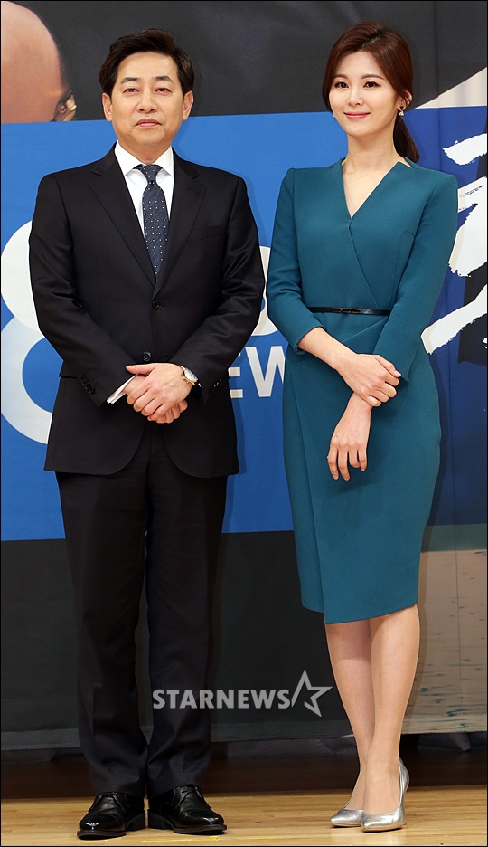 김성준, 최혜림 앵커가 15일 오후 서울 양천구 목동 SBS 사옥에서 진행된 '8시 뉴스 개편' 기자간담회에 참석해 포즈를 취하고 있다.