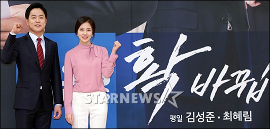 김현우, 장예원 앵커가 15일 오후 서울 양천구 목동 SBS 사옥에서 진행된 '8시 뉴스 개편' 기자간담회에 참석해 포즈를 취하고 있다.