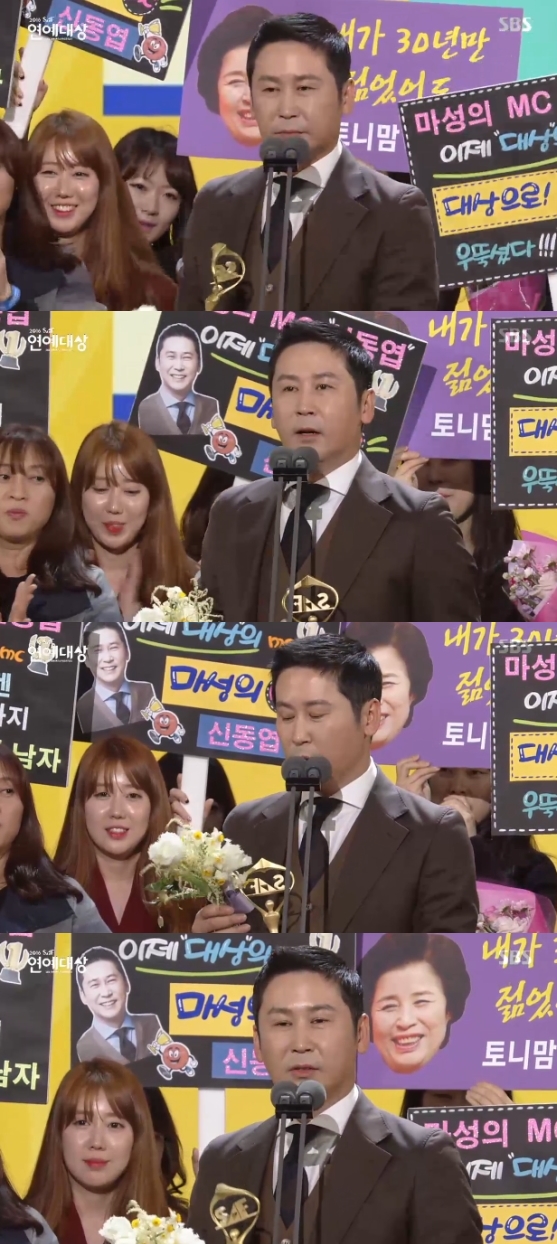 이날 신동엽은 '동물농장', '미운 우리 새끼'로 대상을 받았다. 이는 신동엽의 첫 SBS 연예대상이었다. SBS 특채 개그맨으로 데뷔한 신동엽의 26년만 수상이었다.