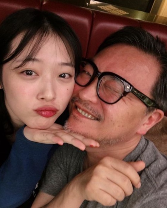 공개된 사진 속 설리는 김의성과 함께 카메라를 향해 포즈를 취하고 있다. 설리는 윙크를 하고 있는 김의성 옆에서 입을 쭉 내밀고 있다. 두 사람은 볼을 맞대고 특유의 다정함을 과시했다.