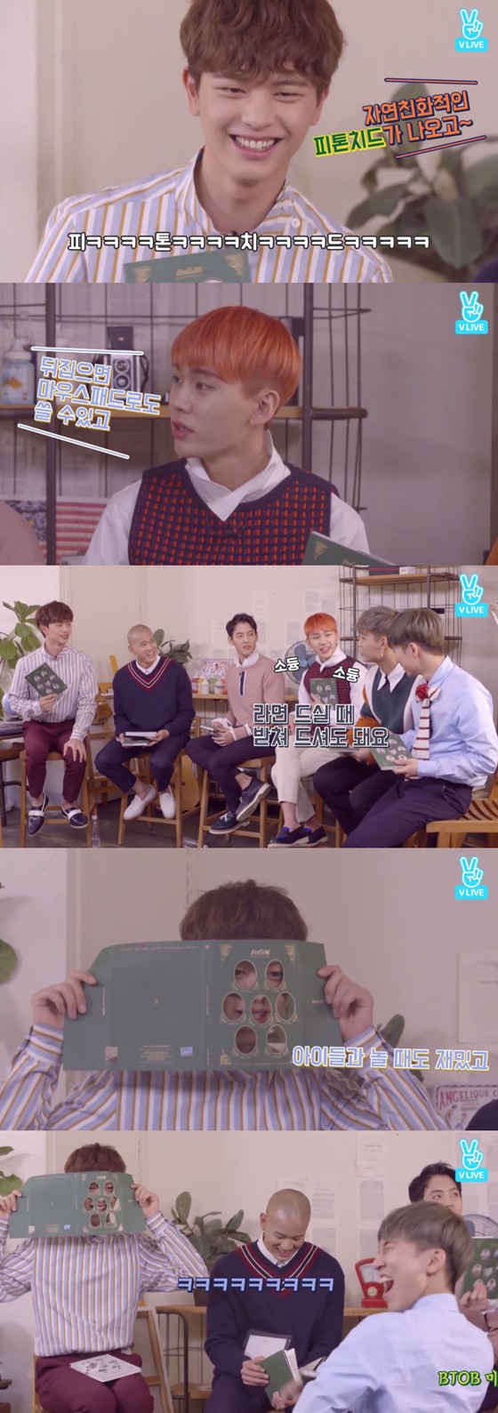 7일 공개된 네이버 V PICK! '[BTOB] 비투비 앨범이 을매나 좋게요'에서 창섭을 제외한 비투비 멤버 6명이 새 앨범 소개 도중 쇼호스트로 변신했다.