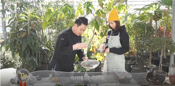영상 속 이연희와 김유재는 엔젤 헤어 파스타에 불고기 버섯 소스가 어우러진 냉 파스타와 허브 비빔밥을 만들었다.