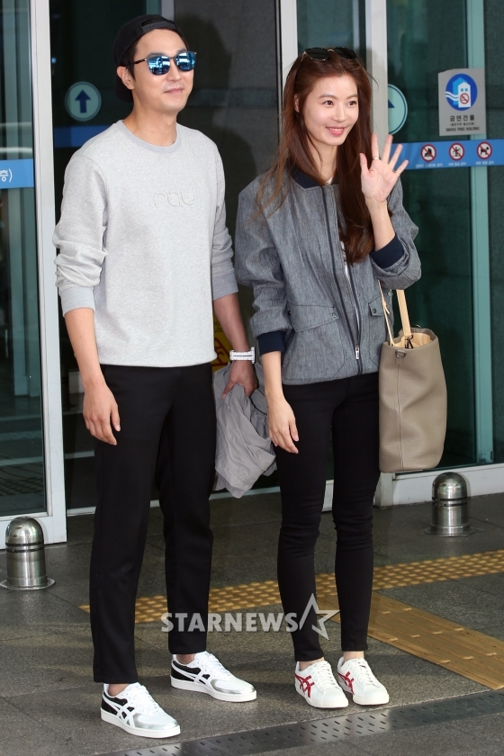윤소이와 조성윤은 편안한 차림으로 취재진을 향해 손을 흔들어 보이기도 했다.
