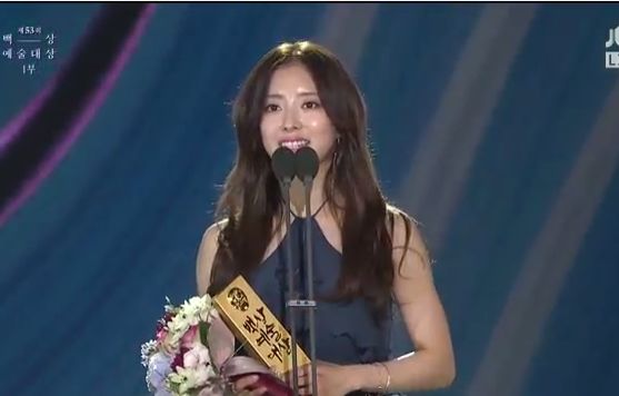 TV 여자신인연기상 후보에는 '미녀 공심이'의 민아, '달의 연인-보보경심 려'의 강한나, '굿 와이프'의 나나, '월계수 양복점 신사들'의 이세영, '마스터-국수의 신'의 공승연이 경합했다.
