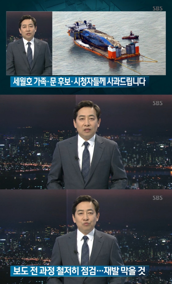 SBS가 전날 보도한 세월호 인양 관련 의혹과 관련해 '8시 뉴스' 생방송을 통해 재차 공식 사과했다.