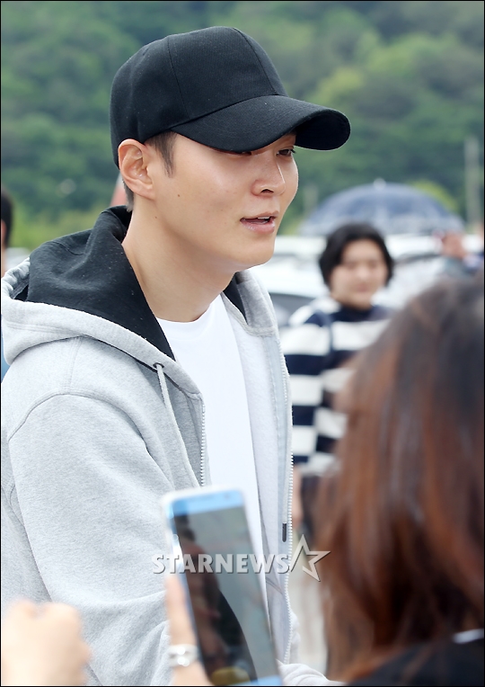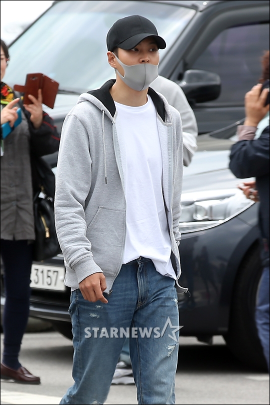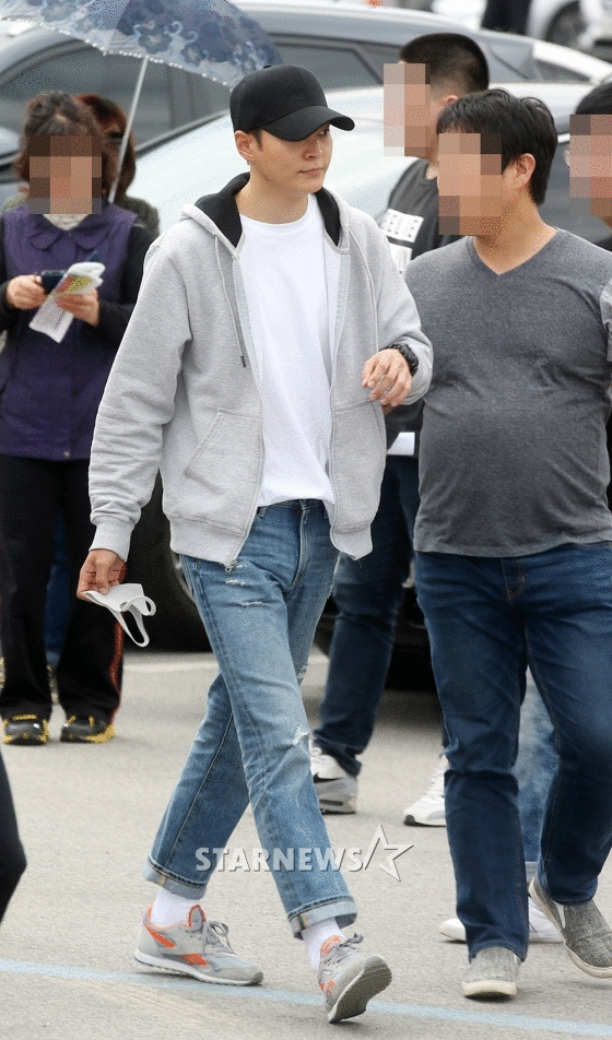이날 주원은 흰 티에 후드 집업, 청바지를 매치한 캐주얼한 차림으로 모습을 드러냈다. 주원은 검은색 모자를 눌러썼지만 얼굴에는 밝은 미소가 함께였다.