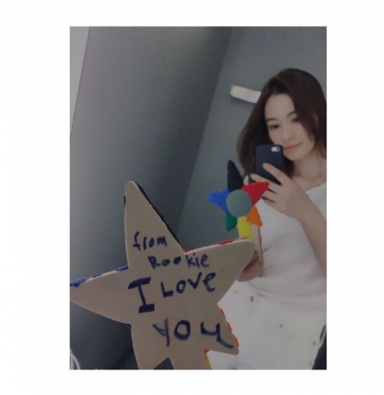 사진 속에는 손태영과 아들 권룩희가 직접 만든 거울이 담겨 있다. 거울에는 "from Rookie I Love you"라는 글이 적혀 있어 룩희의 엄마 사랑을 짐작하게 한다.