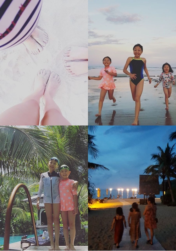 또한 이지인은 세 딸과 함께한 여행사진을 올려 시선을 모았다. 세윤, 소윤, 다윤이가 수영복을 입고 뛰어노는 모습, 원피스를 입고 밤 해변가를 거니는 모습이 훈훈함을 자아낸다.