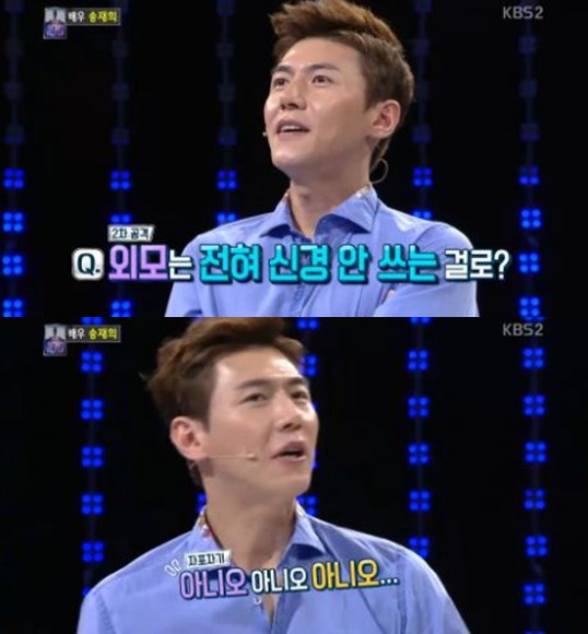 송재희는 '여자친구의 반응이 어땠냐'는 MC 조충현 아나운서의 말에 "'이렇게까지 안 해도 된다'고 하더라"고 말했다. 그는 이어 이상형에 대해 "나만으로 만족할 수 있는 여자"라고 답해 눈길을 끌었다. 그는 또 "외모는 예뻤으면 좋겠다. 세상에서 제일 아름다웠으면 좋겠다"고 덧붙였다.
