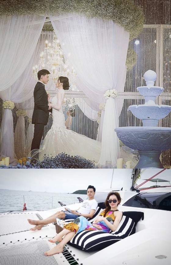 사진은 신주아와 사라웃 라차나쿤의 웨딩 사진이다.