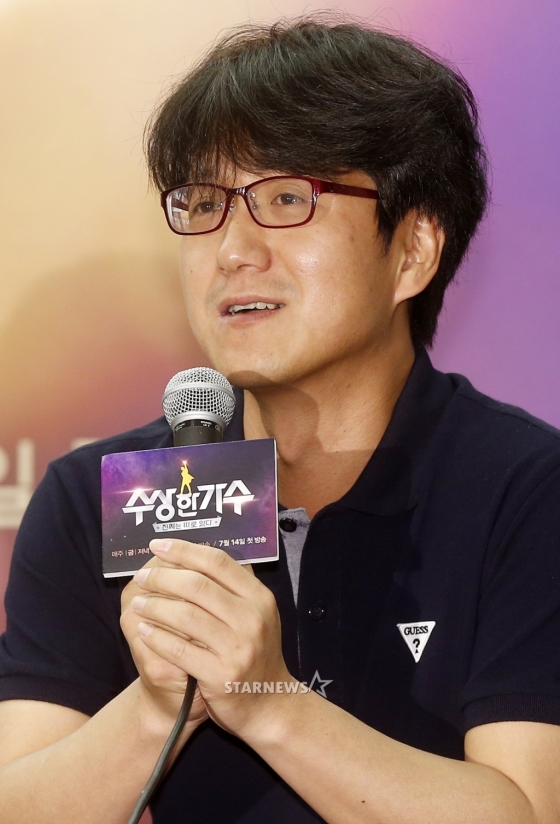 13일 서울 마포구 상암동 스탠포드호텔에서 '수상한 가수' 제작발표회에 열렸다. '수상한 가수'는 스타들이 무명 가수의 복제 가수로 빙의해 환상의 무대를 꾸미는 음악 예능 프로그램. 이날 제작발표회에 참석한 민PD는 전작 '복면가와'과의 차별점에 대해 "형식만 놓고 보면 종합선물 세트"라고 말문을 열었다.