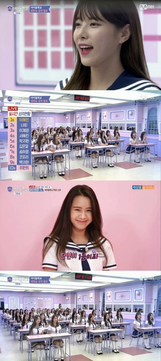 '프로듀스 101' 출신 이해인이 '아이돌학교' 첫 생방송 1위를 차지했다. '식스틴'에서 활약했던 나띠는 2위에 올랐다.