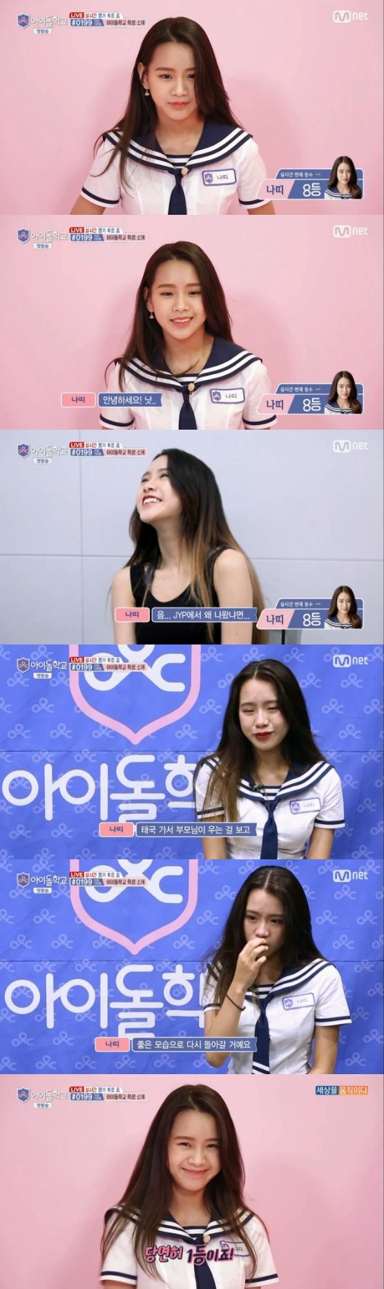 JYP의 걸그룹 선발 리얼리티 프로그램 '식스틴'에 출연해 주목받았으나 결국 탈락했던 태국 출신 연습생 나띠는 이날 41명 학생 중 마지막으로 교실에 등장했다.