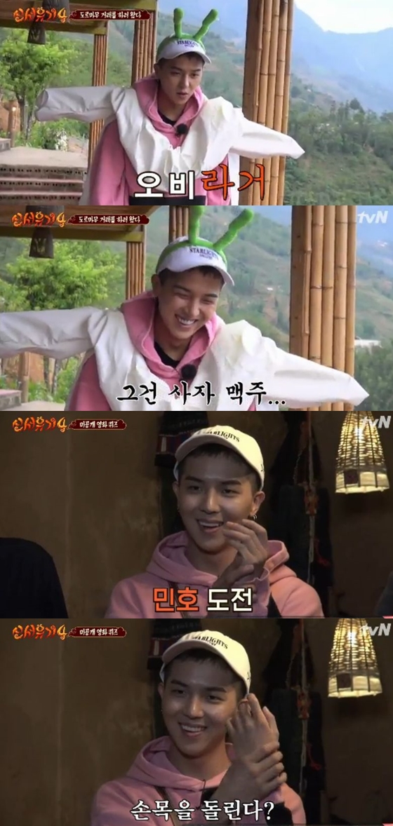 지난 8일 오후 방송된 tvN 예능프로그램 '신서유기4'에서는 '도르마무 거래를 하러 왔다', '미공개 영화 퀴즈'에 참여하는 멤버들의 모습이 그려졌다. 이날 송민호는 여전한 '송모지리' 모습을 드러내 시선을 모았다.