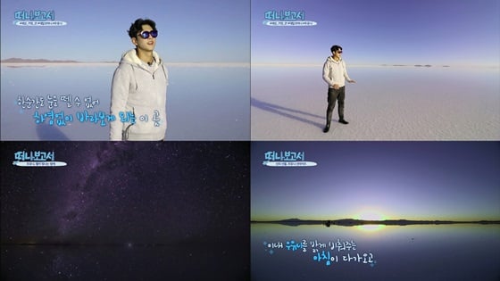 '떠나보고서' 측은 "반사된 태양이 마치 2개의 태양처럼 보이는 일출에 소원을 빌며 우유니 소금사막의 24시간을 시청자들에게 고스란히 전할 예정"이라고 전했다. 5일 오후 8시 20분 방송.