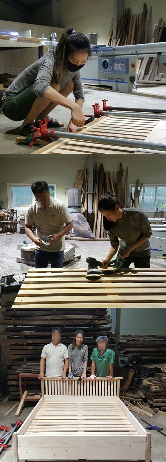 공개된 사진 속에는 김정민이 목공 작업을 하고 있다. 이외에도 김정민은 다른 사람에게 도움을 받아가며 침대를 제작하는 모습이 담겨있다. 또 김정민은 목공 침대를 공개하며 환하게 미소 짓고 있다.