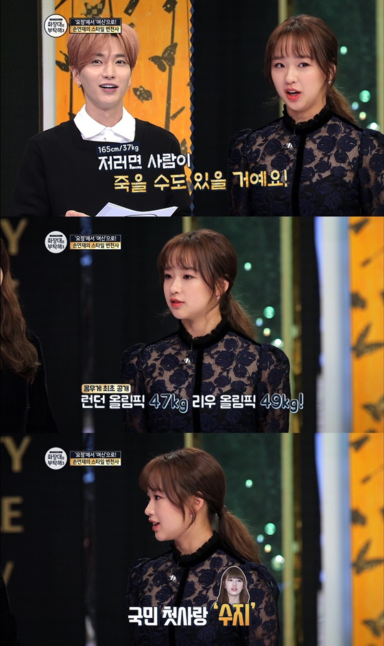 최근 녹화에서는 신장 165cm, 체중이 37kg이라는 손연재의 국가대표 선수 시절 프로필이 공개돼 눈길을 끌었다. 그러나 손연재는 "저러면 사람이 죽을 수도 있을 것"이라고 말했다.