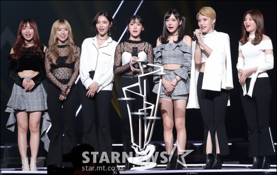 중국 그룹 SNH48 유닛 7SENSES가 15일 오후 서울 송파구 잠실 실내체육관에서 진행된 '2017 AAA(Asia Artist Awards)'에서 베스트 스타상을 수상한 뒤 소감을 말하고 있다.