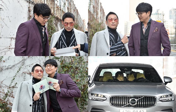공개된 사진 속 신동엽과 성시경은 평소에 볼 수 없었던 파격적인 의상을 선보여 눈길을 끈다. 신동엽은 네이비 스트라이프 슈트에 회색 코트를 걸치고 화려한 레드 선글라스를 착용하고 있다. 또한 성시경은 보라색 슈트에 화려한 패턴의 스카프를 두른 채 한쪽 귀에만 귀걸이를 착용하고 있어 색다른 캐릭터 변신을 예고하고 있다.