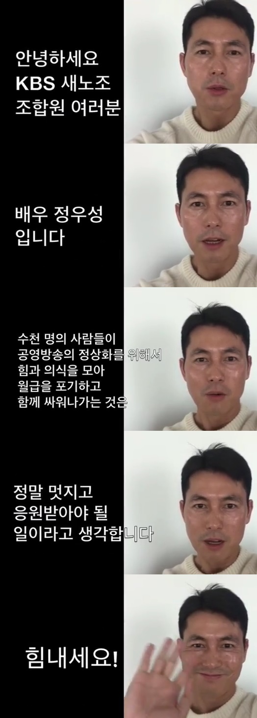 배우 정우성이 KBS 새 노조의 파업을 응원했다.