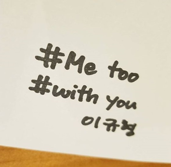 공개된 사진에는 '#Me too, #with you 이규형'라고 적힌 종이가 담겨있다.
