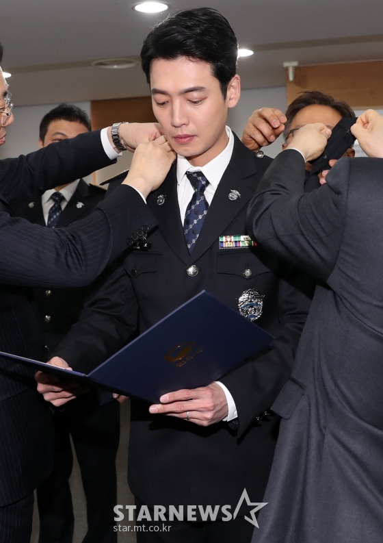 연예방송[★포토]승진하는 정경호 교도관발행 : 2018.02.28 ・ 11:44과천(경기)=김휘선 기자배우 정경호가 28일 오전 경기도 과천시 정부청사 법무부에서 진행된 '명예교도관 위촉식'에 참석해 위촉장을 전달받고 있다.<저작권자 © 스타뉴스, 무단전재 및 재배포 금지>명예교도관 위촉식추천 기사김휘선 기자기자홈좋아요 연예-방송의 인기 급상승 뉴스연예-방송의 최신 뉴스