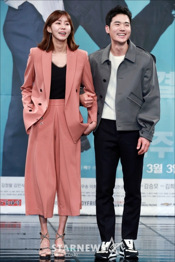 배우 유이와 김강우가 2일 오후 서울 마포구 상암동 MBC 신사옥에서 열린 MBC 새 주말드라마 '데릴남편 오작두'(극본 유윤경·연출 백호민,제작 팬엔터테인먼트) 제작발표회에 참석해 포즈를 취하고 있다.'데릴남편 오작두'는 극한의 현실을 사는 30대 중반 직딩 솔로녀 한승주(유이 분)가 오로지 유부녀라는 소셜 포지션을 쟁취하기 위해 순도 100% 자연인 오작두(김강우 분)를 데릴남편으로 들이면서 시작되는 역주행 로맨스 드라마로 3일 저녁 첫 방송된다.