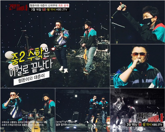KBS 2TV 음악 예능 프로그램 '건반 위의 하이에나'(연출 남성현) 제작진은 15일 형돈이와 대준이의 신곡 '중2 수학은 이걸로 끝났다' 공연 무대 영상을 선공개했다고 밝혔다.