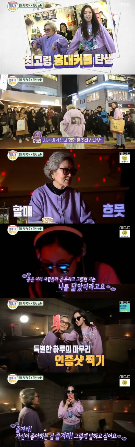 이날 김영옥은 손녀와 함께 홍대 나들이를 갔다. 손녀가 추천한 옷을 맞춰 입고 두 사람은 힙합 펍을 찾았다. 손녀는 "할머니랑 이런 데를 다 와 보네"라고 했다. 이에 김영옥은 "너는 좋니? 여기 온 게 너는 좋아?"라고 물었다.