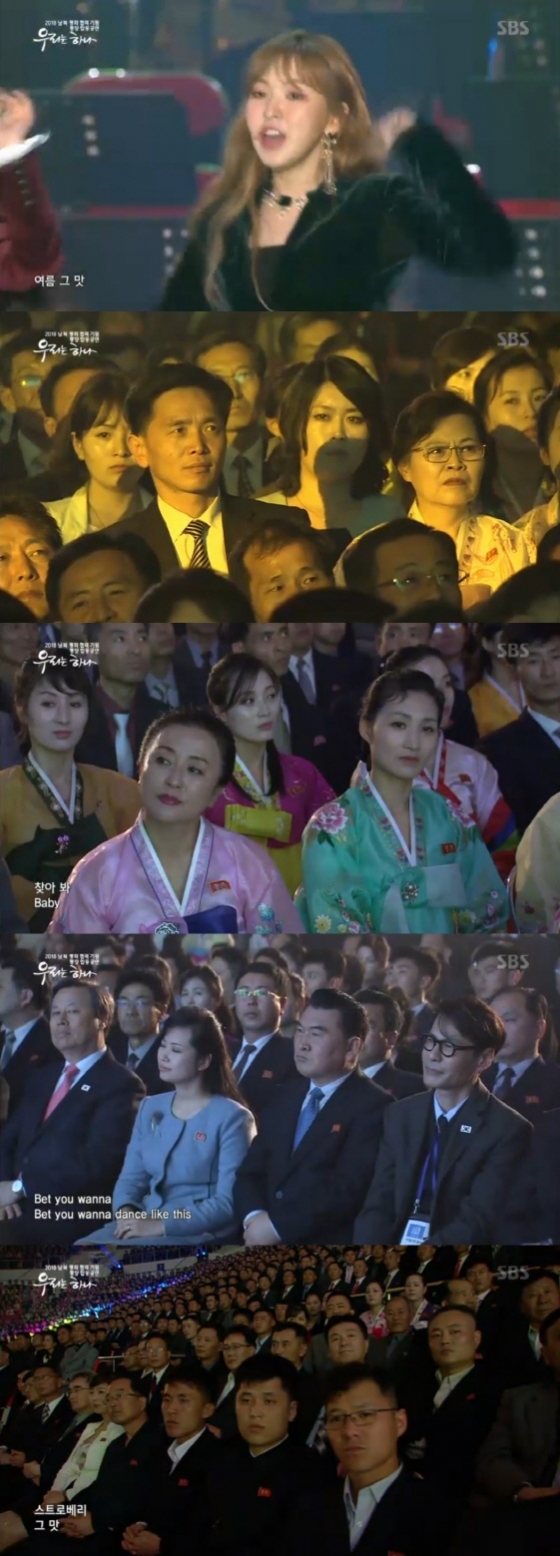 카메라에 잡힌 북한 관객들은 레드벨벳 공연에 일절 반응하지 하고, 무표정한 표정으로 일관해 주목 받았다.