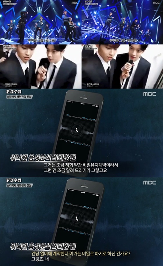 이와 관련해 'PD수첩' 측은 소리공학연구소에 분석을 의뢰한 팬과 전화연결을 시도했다. 해당 워너원 팬은 분석 계약조건에 대해 "그거는 비밀유지계약이라서 알려드리기 그렇다"라면서 계약금 또한 "비밀이다"라고 답했다.