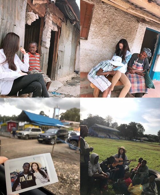 공개된 사진 속 김사랑은 아프리카 케냐 아이들과 즐거운 시간을 보내고 있다. 특히 아이들을 위로하기 위해 기타 연주를 해주는 모습이 눈길을 끈다.