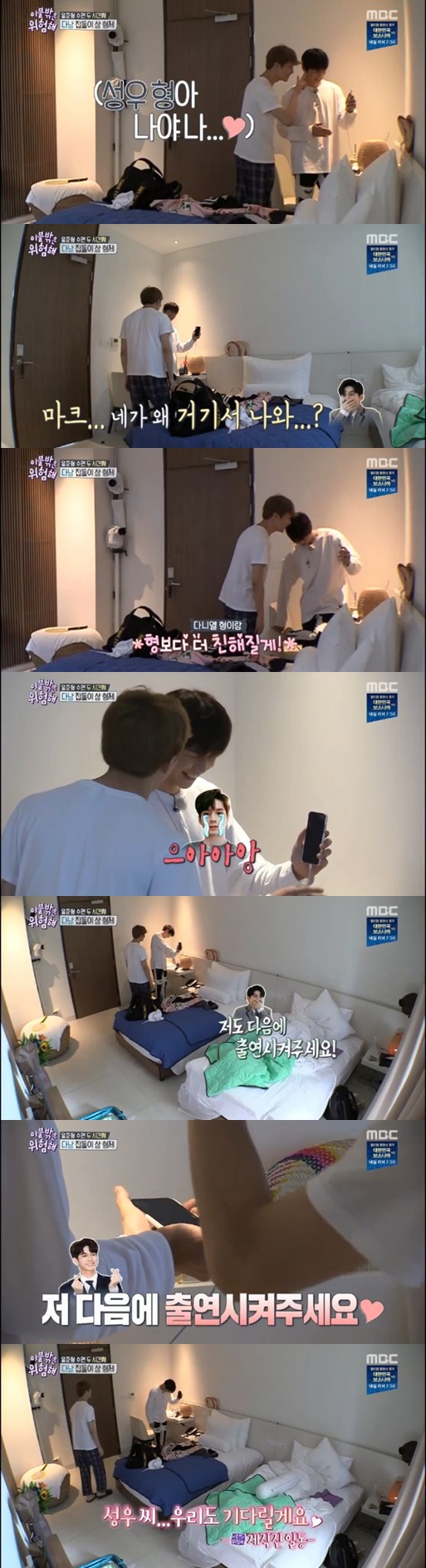 "형보다 더 친해질게"라는 마크의 장난에 옹성우는 '와앙'이라며 안타까워했고 "저도 다음에 출연시켜 달라"고 요청하기에 이르렀다.
