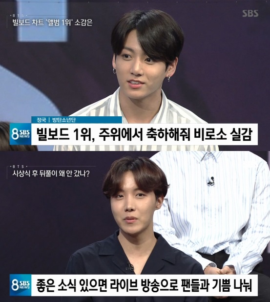 이날 방탄소년단은 빌보드 200 차트에서 1위에 오른 것에 대해 "처음 1위 소식을 듣고 실감이 안 났다. 주위에서 축하를 해주시고 좋은 말씀 해주셔서 조금씩 실감이 나고 있다. 더 많은 노력을 하고 더 성장을 하려고 노력을 하려고 한다"라고 소감을 밝혔다.