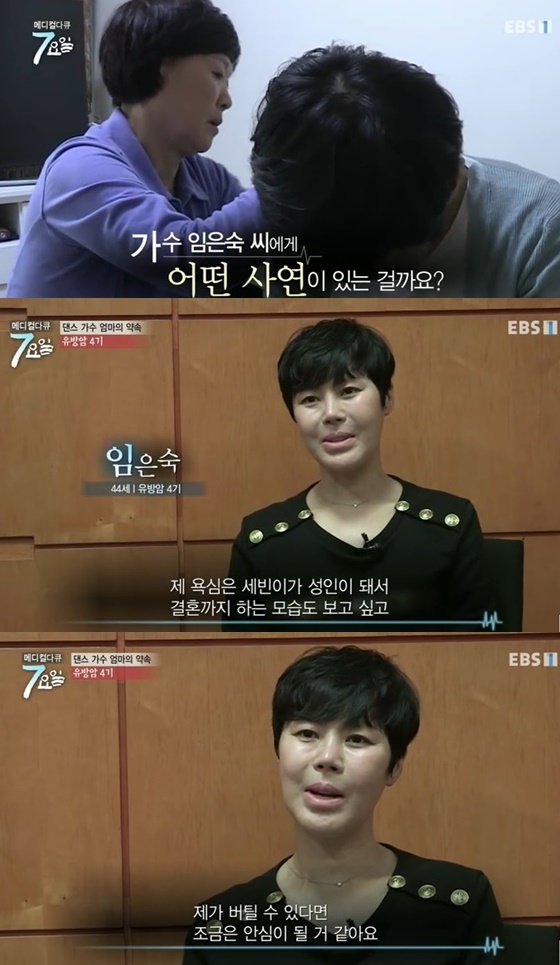 뿐만 아니라 임은숙은 "제 욕심은 딸(세빈)이 성인이 되어서 결혼까지 하는 모습도 보고 싶다. 그런데 그것은 말 그대로 제 욕심이다"고 말해 안타까움을 자아냈다.