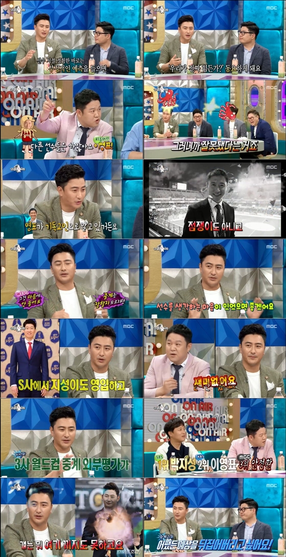 '라디오스타'를 찾은 안정환이 지상파 3사 해설위원으로 맞붙는 이영표와 박지성을 언급했다.