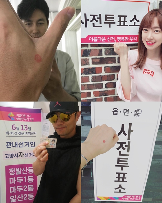 정우성, 손현주, 진세연, 진구, 임수정, 지석진, 유재석, 박경림, 남희석, 오상진, 박휘순, 정지훈 등 많은 스타들이 각자 공식 SNS를 통해 6·13 지방선거 사전투표에 참여한 모습을 담은 인증 사진을 공개했다.
