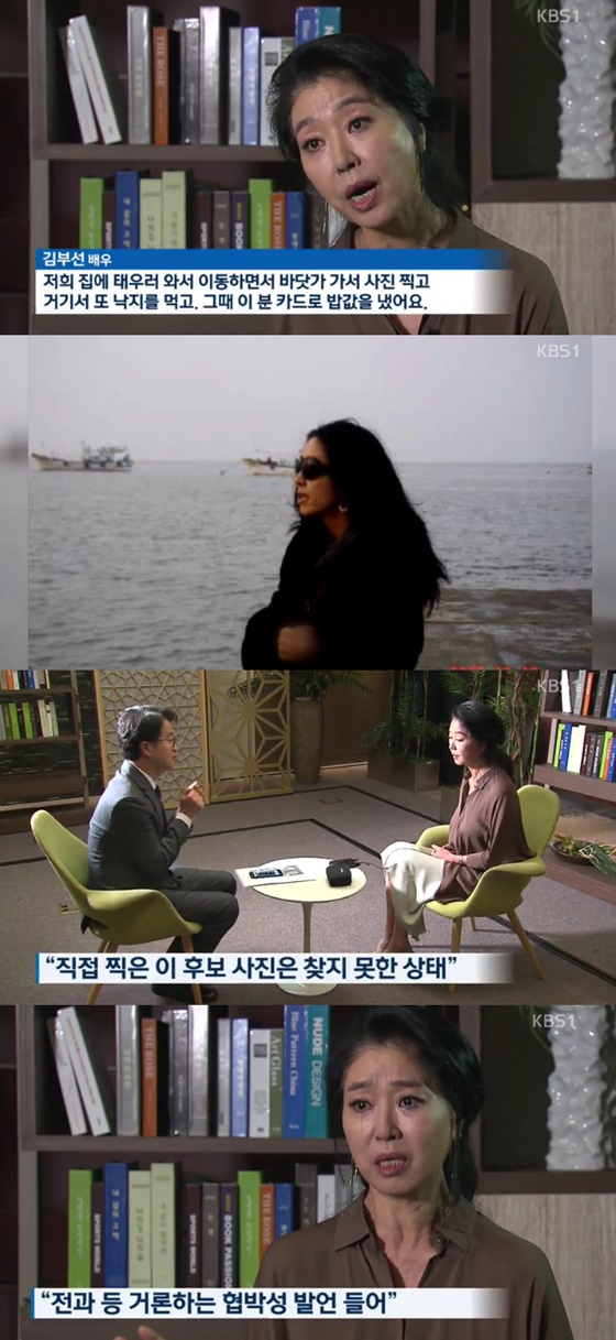 이에 대해 김부선은 이재명 후보가 당시에 찍어준 사진이 맞다고 주장하며 "저희 집에 태우러 와서 이동하면서 바닷가 가서 사진 찍고 거기서 또 낙지를 먹었다. 그 때 이 분 카드로 밥값을 냈다"라고 말했다.