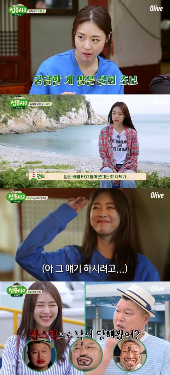 25일 오후 방송된 올리브 예능 프로그램 '섬총사2'에서는 첫 여행지인 전남 여수 소리도를 찾은 강호동, 이수근, 이연희의 모습이 그려졌다. 이날 단연 관심을 모은 것은 홍일점으로 새롭게 합류한 이연희였다.