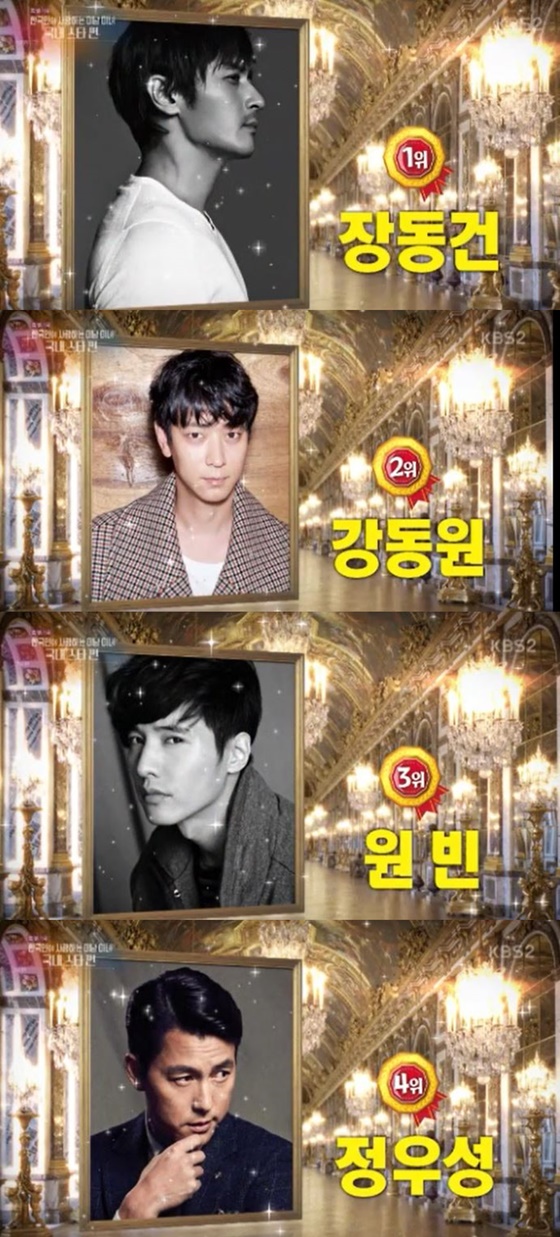 한국인이 사랑하는 미남 1위는 '얼굴 문화재' 장동건이 뽑혔다. 장동건은 40대~60대 연령층에서 높은 지지를 받았다. 장동건은 '연예가중계'에서 "잘생겨서 불편한 점은 없다"라고 말하기도 했다.