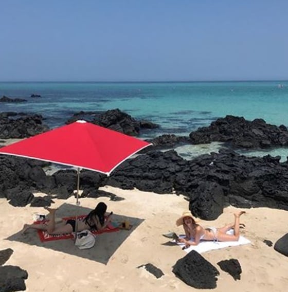 변정수는 16일 인스타그램에 "프랑스 해변이 부럽지 않다. 현무암 때문에 제주도 티남"이라는 글과 함께 사진을 공개했다.