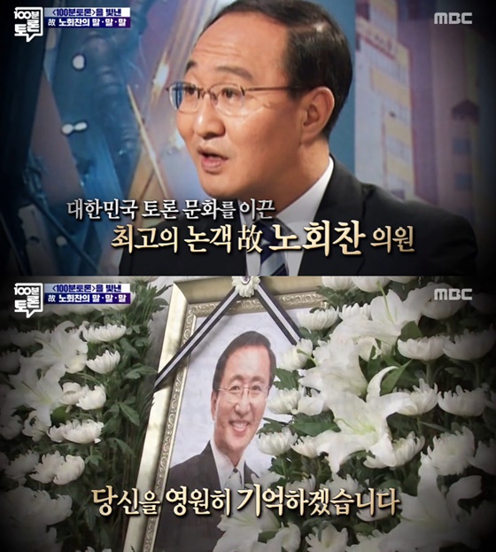 지난 24일 방송된 MBC '100분토론'에서는 노회찬 의원의 방송 어록을 정리하며 그를 추모했다. '100분토론' 측은 "2002년 이후 총 32회 '100분토론'에 출연해 깊은 인연이 있다"라고 노회찬 의원을 소개했다.
