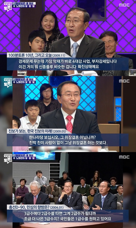 2009년 11월 '100분토론 10년, 그리고 오늘'편은 노회찬 의원의 어록이 쏟아졌던 날이다.
