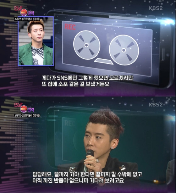 27일 오후 방송된 KBS 2TV 연예정보 프로그램 '연예가 중계'에서는 최근 악플 때문에 고통을 호소했던 브라이언과의 인터뷰를 공개했다.