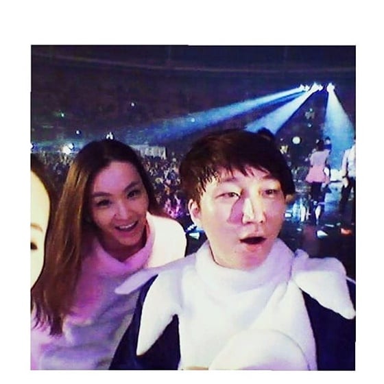 공개된 사진 속 배윤정은 글에 적은 것처럼 히트 안무를 같이 짠 전홍복 단장과 함께 미소를 지으며 카메라를 응시하고 있는 모습이다.